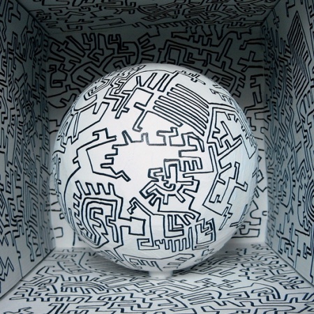 " Künstlerball", 2006, Kunstverein Gelsenkirchen, B:45cm T:45cm H:45cm, Pappe, Fußball, Farbe